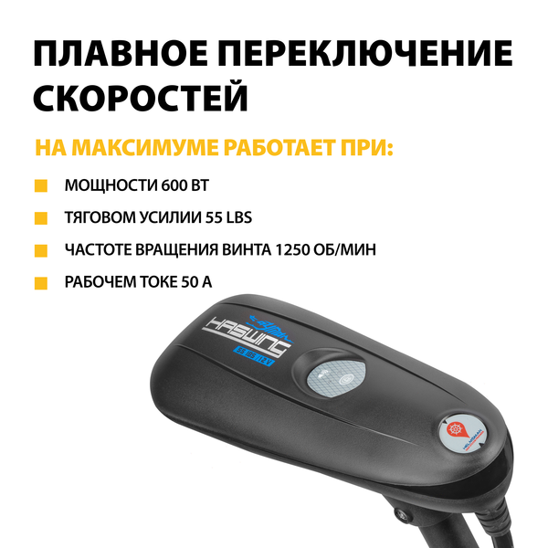 Электромотор Haswing Cayman-B 55 GPS / 12V / 152 см с режимом «электронный якорь», поддержкой приложения Helmsman и управлением от пульта дистанционного управления. Двигатель оснащена анодной защитой и герметизированной электроникой. Стандартно поставляется со всем необходимым для установки на лодку или с помощью быстросъемного крепления (приобретается отдельно). Все моторы серии Cayman оснащены светодиодным индикатором заряда батареи и 1,5-метровым проводом питания. Цифровой регулятор скорости DIGIMAX экономит заряд батареи и максимально увеличивает время пребывания в воде. Обеспечивает плавное бесступенчатое регулирование скорости. Электронная функция безопасности предотвращает ложные пуски при первоначальном подключении к аккумулятору. Функция Full Motor Pilot Control (включает все функции дистанционного радиоуправления также на вашем мобильном телефоне или планшете).